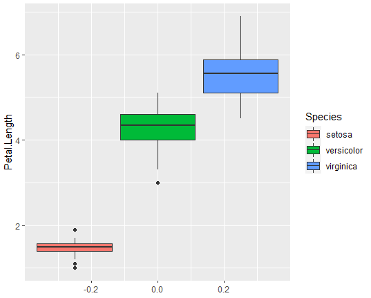 ggplot(data=iris, aes(y=Petal.Length, fill=Species))+