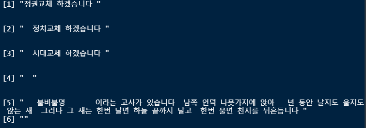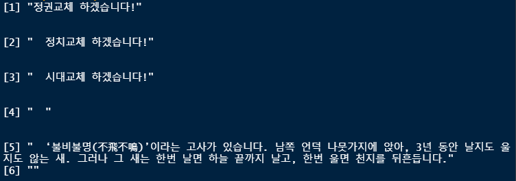 raw_moon <- readLines("speech_moon.txt", encoding="UTF-8") # 문장 추출