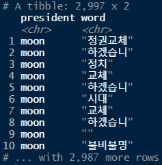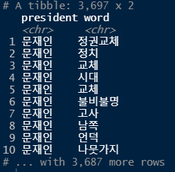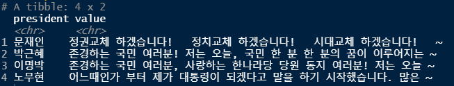 mutate(value = str_replace_all(value, "[^가-힣]", " ")) %>%