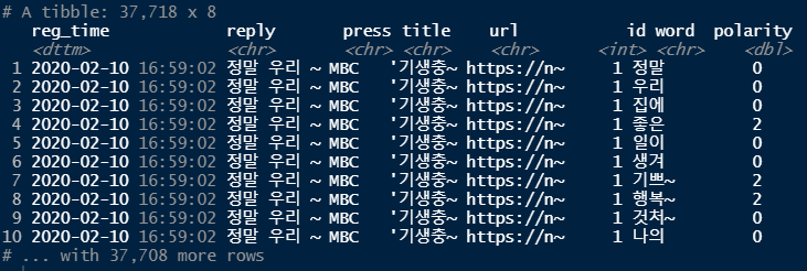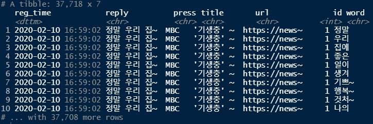 raw_news_comment <- read_csv("news_comment_parasite.csv") # 댓글 csv파일 읽어오기