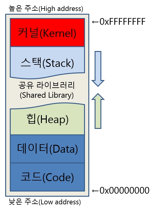 (위 그림에서는 따로 BSS영역과 데이터영역을 구분하지 않았다.)